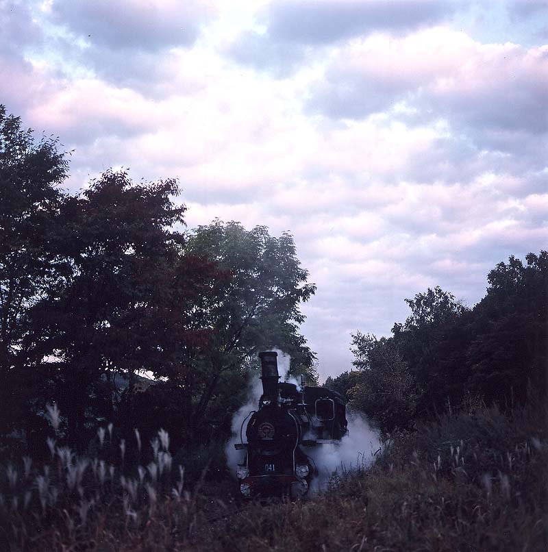 ![]() ■ 9月24日 下樺〜駝腰子 ようやく運行再開。畑仕事の脇を駆け抜けるC2。 |