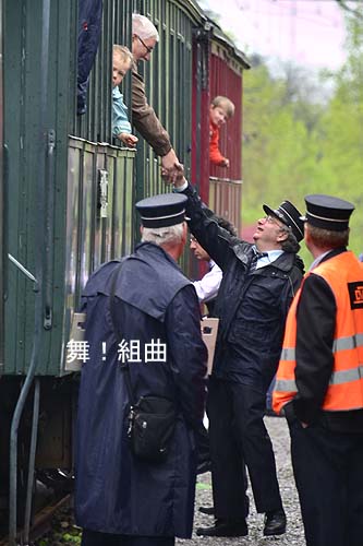 Zürich HBF(チューリッヒの中央駅)からWetzikon までは近郊列車のS5で20分、バスに乗り換えて17分で現地に着けることが分かった。 機関車は2台が走っていた。401号機という1901年製造機と8518号機という1913年製造機である。ただ、8518号機は途中で不調になったからか、1931年製造のBe 4/4 Nr.15 という電気機関車がスジに入ってきた。401号機は日本の元号だと明治34年である。車齢114年の機関車が本線を走りまくる姿は感動であった。そして現場では、よく日本から来てくれた、と歓待され嬉しい思いがした。 |