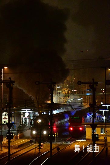 撮影地のこの日あたりの日没時間は16時37分(冬時間のため日本との時差は8時間)であった。 よってこの時間より遅い列車は夜汽車の雰囲気となる。 |