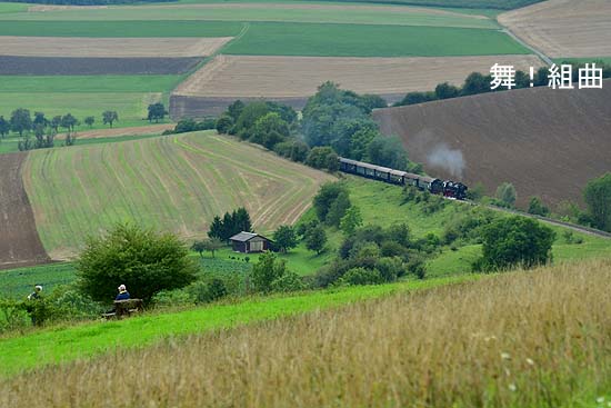 このページでは 始点の Zollhaus-Blumberg から一つ目の駅である Epfenhofen で撮影した写真ばかりを UP した。 丘陵地帯の谷を越える エプフェンホーフェン橋は町の真ん中に架かっており、線路は大きくカーブする線形で敷設されている。機関車は11日が Nr.262 で、12日には Dampflokfreunde-Schwarzwald が所有する BR-50 (形式50型)2988号機 が走った。Epfenhofen を俯瞰する丘に登れば、遠くから近づいてくる汽車が30分程も展望できるし、町中で撮影すると自分をぐるりと取り巻いて走る様子に圧倒される。 |
