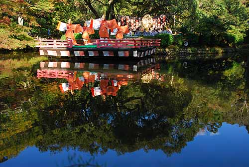 11月3日、この日の春日大社さんでは二つの祭典と行事が斎行される。 午前10時の本殿では『明治祭』が斎行される。その祭典は、明治天皇の誕生日(嘉永5年9月22日を太陽暦になおすと、11月3日)である『天長祭・紀元節・明治節』となる。この祭典に引き続いて林檎の庭で、【綾切】(左写真)が奉奏された。 そして午後1時半、神苑において文化の日演奏会が行われる。文化の日は、昭和21年のこの日に戦争放棄・主権在民の日本国憲法が公布されたことを記念し、自由・平和を愛して文化的であることをすすめる日である。 その文化の日の演奏曲目は、管弦が【盤渉調音取】【劒気褌脱(けんきこだつ)】舞楽が【振鉾】【北庭楽】【長保楽】【還城楽】、そして【長慶子】であった。 神苑は美しく、舞楽の舞台としても素晴らしいロケーションである。水鏡に映る舞人さんの姿も華麗で、私の写真をご覧下さった方が、ぜひこの場所で実演を鑑賞してみたいと思っていただけるような写真が撮れたならと思い、シャッターを切った。 |