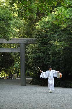 御ト(みうら)は“由貴夕朝大御饌祭”に奉仕される神職が、奉仕にかなうか御神意を伺う儀式である。 外玉垣内部で行われるので、奉拝(見学)は可能であるが、撮影は禁止であり、参進が写真の中心となる。 神事に奉仕される神職さんが全員参進されるので、多くの神職さんが進まれる。 先頭は祭主であり、昭和27年神宮規定により『皇族又は元皇族であったものを勅旨を奉じて定める』ことによって選ばれている。【古事記・日本書紀】には、天皇の皇女などからト定(ぼくてい・・・うらない)で選ばれて、天照大御神の御杖代(みつえしろ・・・代わり)として伊勢神宮近郊の斎宮に居を構えた斎王が出てくるが、現在の祭主もその流れであろう。 |