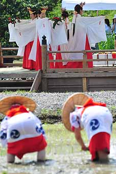 | 上写真3枚;御田植と巫女舞 | |