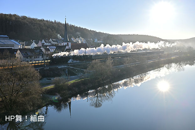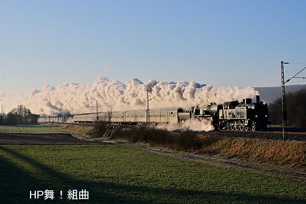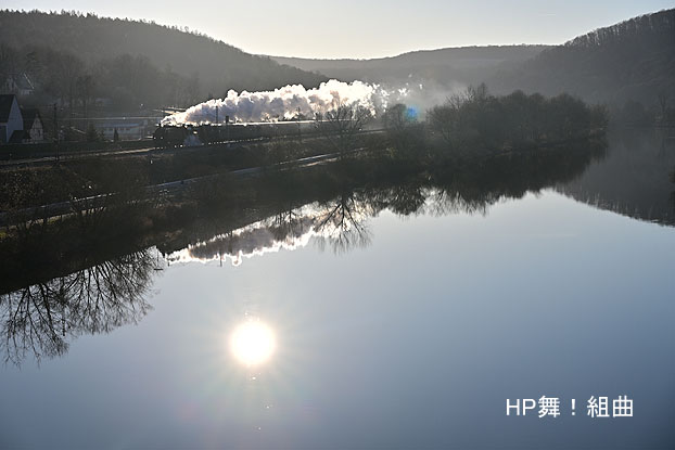 ■ 2025年12月28日(日) 撮影場所;ヒンメルシュタット、ヴュルツブルクHBF、ヴェルンフェルト Mit Volldampf um Würzburg Dampflokrundfahrten entlang des Mains (ヴュルツブルクからマイン河に沿って周遊蒸機列車)と称した企画列車が走った。 2024年年末に走った同企画列車の写真は No.99 に UP済である 前回と異なり、今回は Eurovapor の Lok 77.250 と Lok 52 7409 が重連で走った。 撮影に関しては昨年もマイン河沿いで撮影した場所に再度行き、完全逆光を逆手 にとって光と白煙を狙ってみた。2024年は曇天でマイナスの気温で寒かったが、 2025年度は暖かな日であった。 |